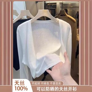 シルク無地ニットカーディガン春夏薄手アウターフレンチチュールコートクーラーブラウスストール