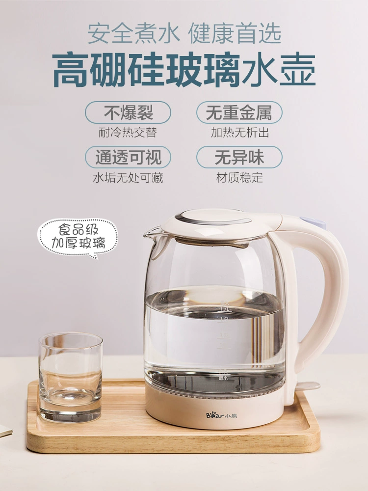Little Bear Home Glass Electric Kettle Kettle Large Capacity Automatic Power Off Fast Kettle Mini Transparent Boiling Water Teapot