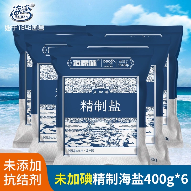 [6 bags] bay iodized salt, edible salt, anti-caking agent, table salt, household non-iodized, sun-dried sea salt, no additives