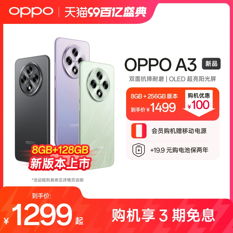[New Arrivals] OPPO A3 5G Durable God of War Straight Screen Edition Double-sided Drop Resistance and Wear Resistance Full-level Life Waterproof OLED Super Bright Sunshine Screen AI Mobile Phone Oppo Official Flagship Store