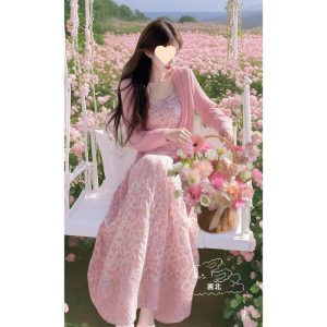 春の韓国衣装セット レディース 2025 新しい優しいスタイルのカーディガントップ 花柄のリンク付き
