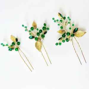 新製品、新作、手作り、エメラルドグリーン、葉、ヘアピン、ブライダル、U字型ピン、結婚式、写真、プレート、ヘアフォーク