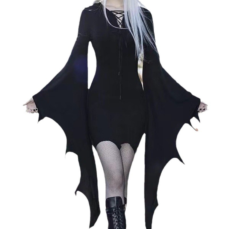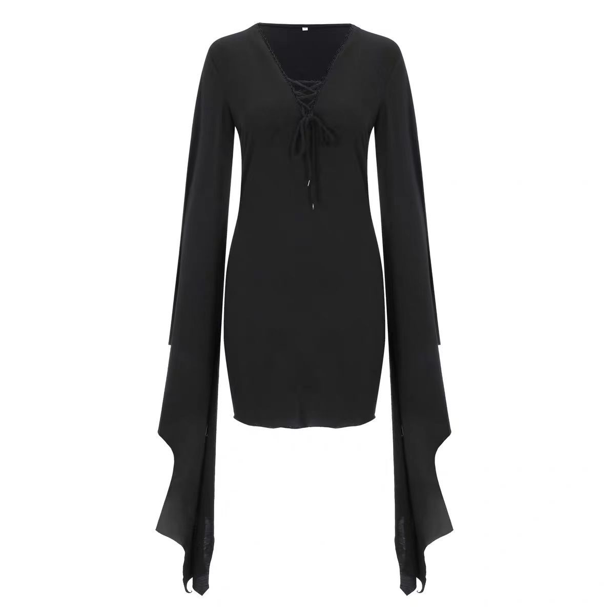 欧米のクリスマス・ハロウィンの新作婦人服純色バンド不規則ワンピース