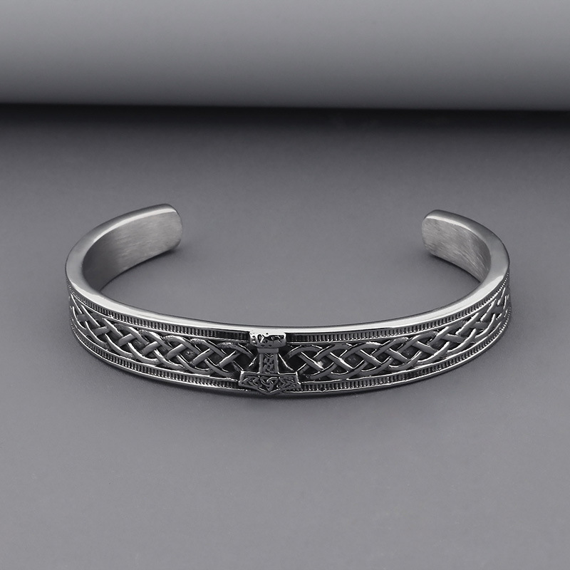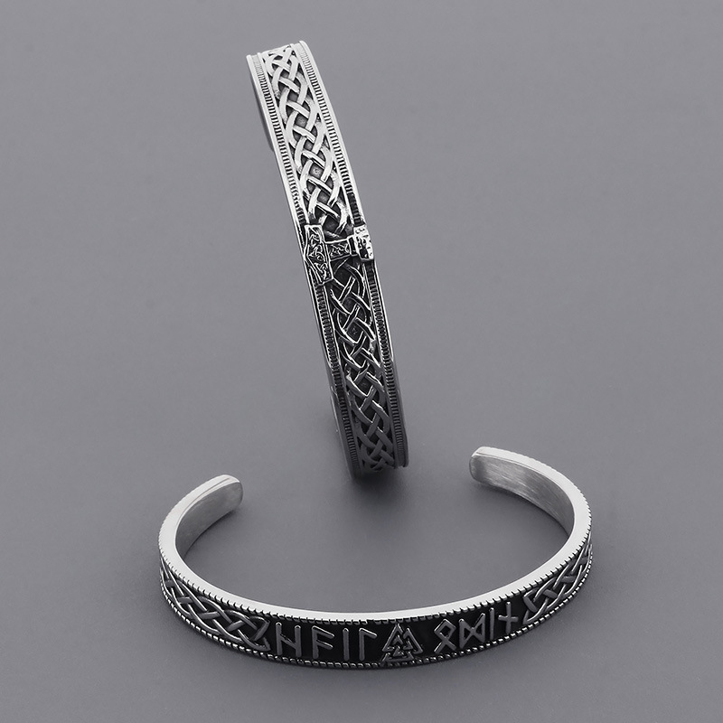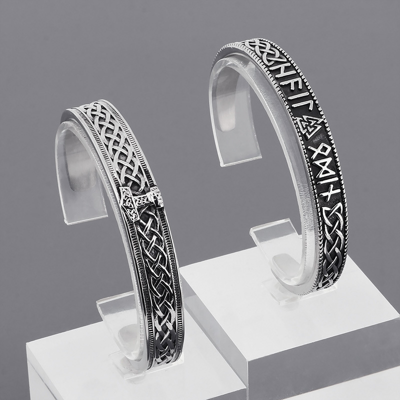 歐美飾品維京符文雷神之錘開口鈦鋼手鐲不鏽鋼朋克配飾飾品批發