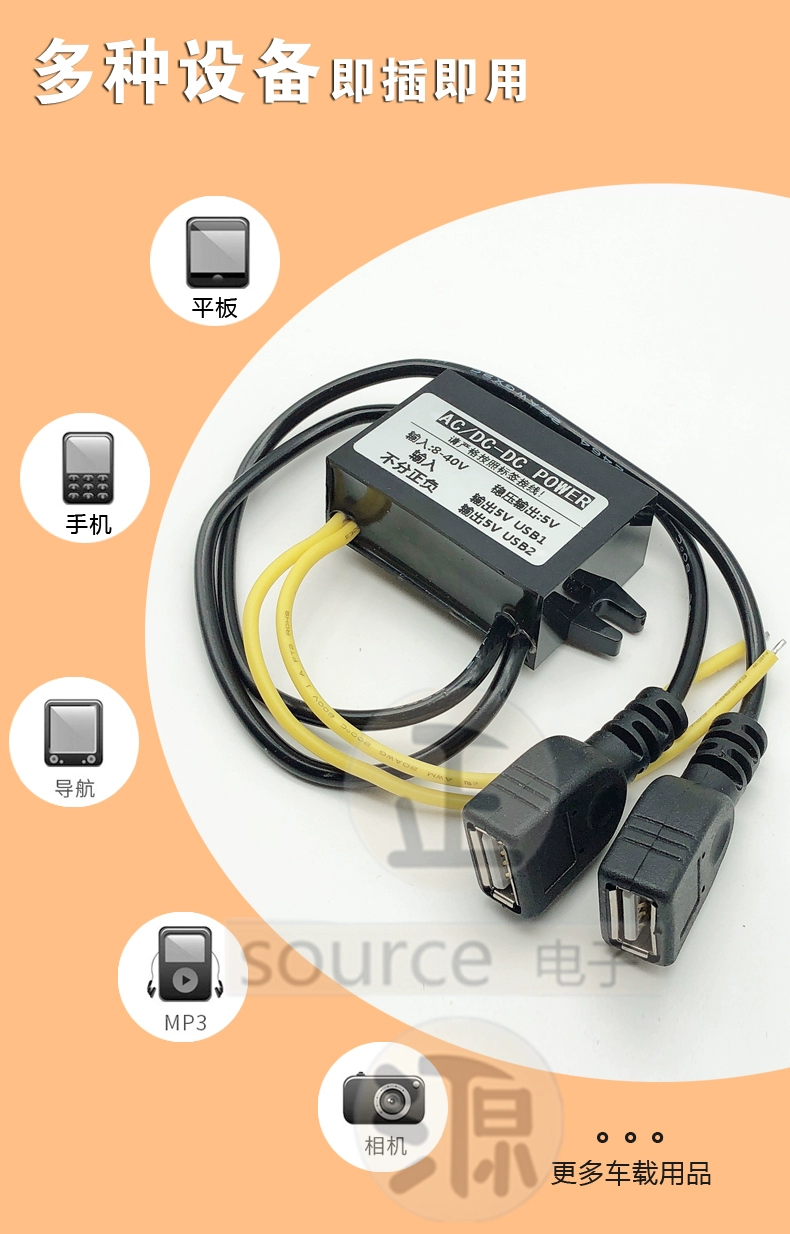 48V36V24V12V to 5V dual USB ports, 48V36V24V12V to 5V single USB head, customizable