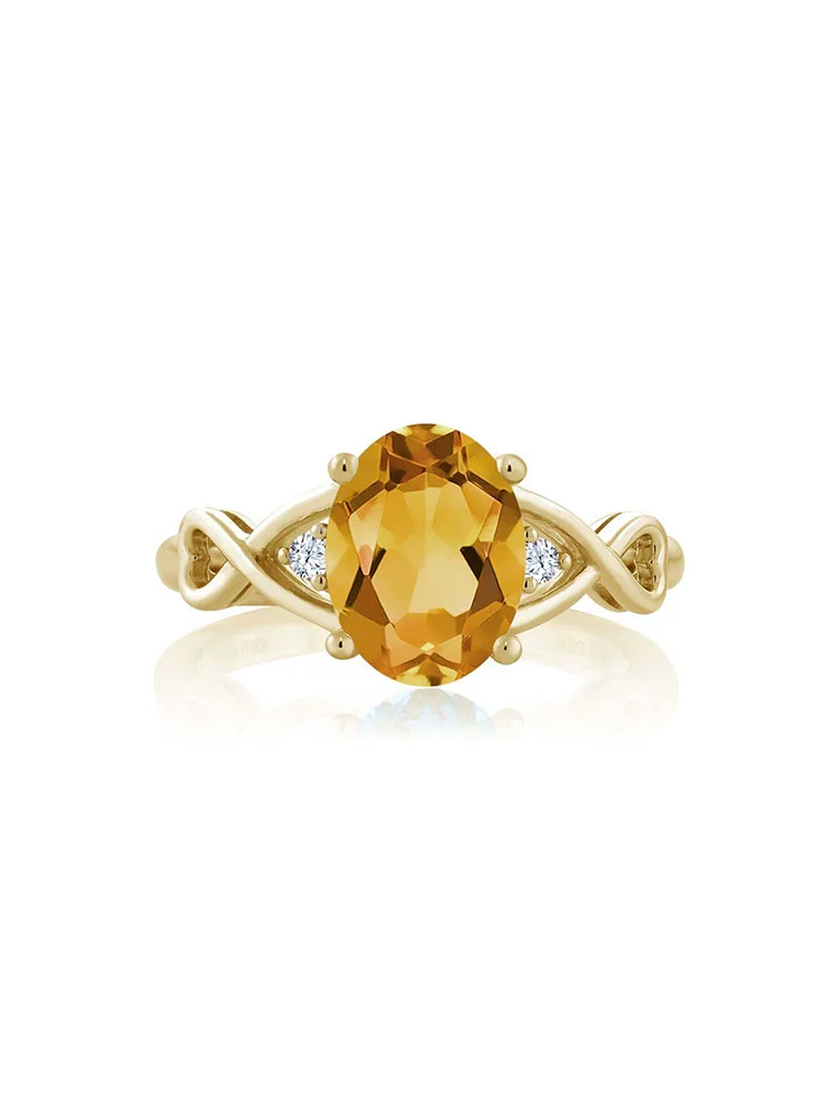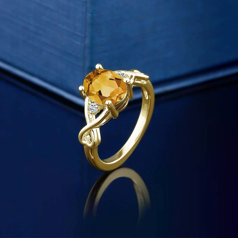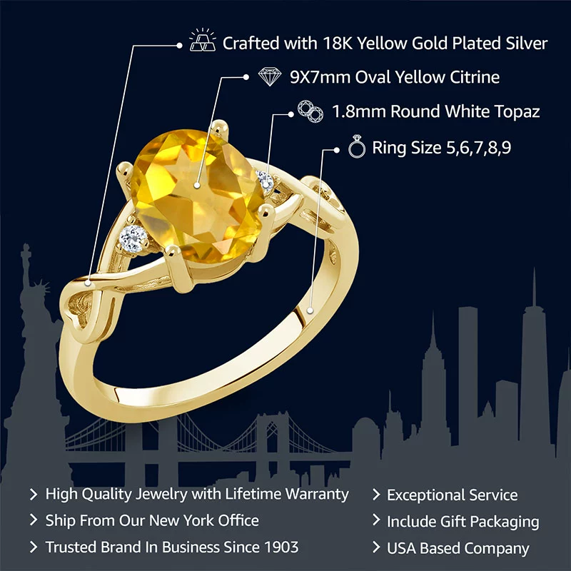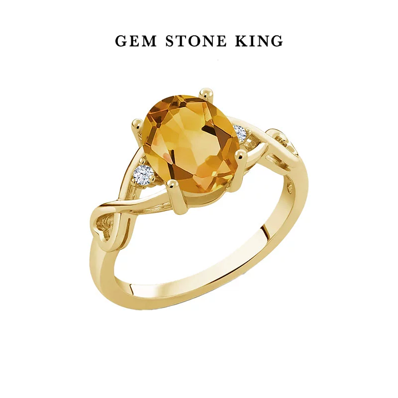 GSK Citrine Ring Women’s 925 Sterling Silver Set 1.55 Carat Colored Gemstones Fashion Valentine’s Bridge Index Finger Ring