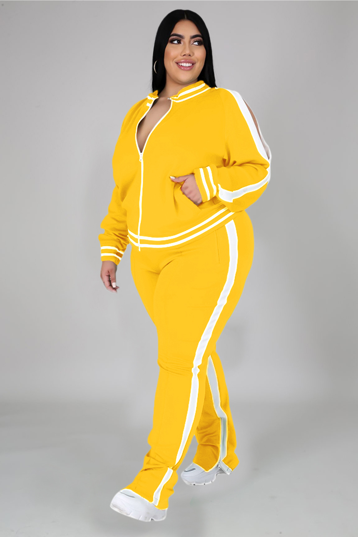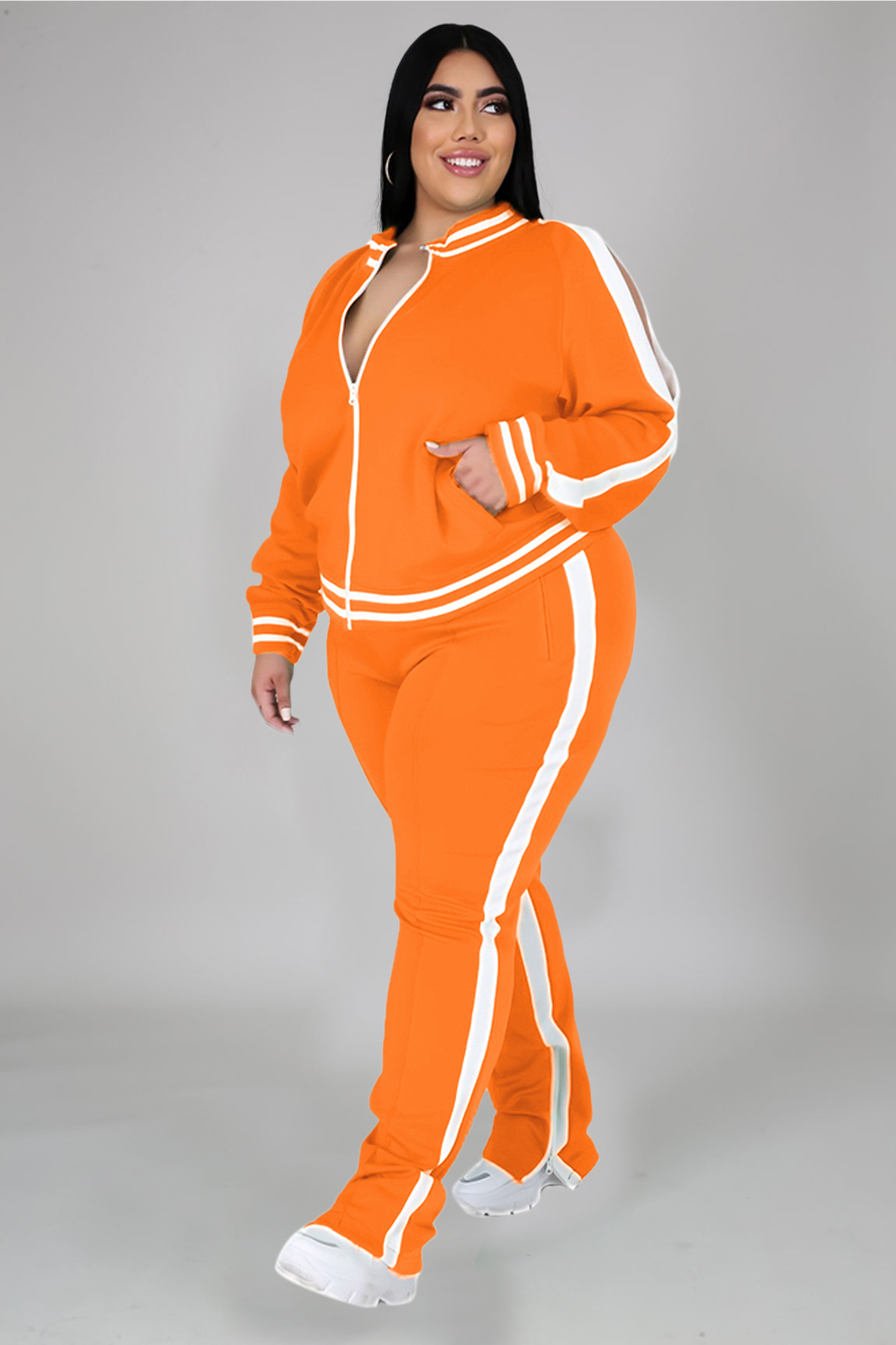 PP019欧美秋冬爆款长袖长裤纯色特色休闲运动女士套装