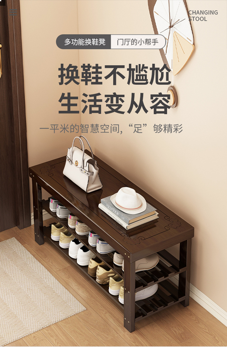 Shoe changing stool door, household shoe cabinet stool, integrated into the house, wear shoe stool, enter the door, you can sit on a solid wood shoe rack bench