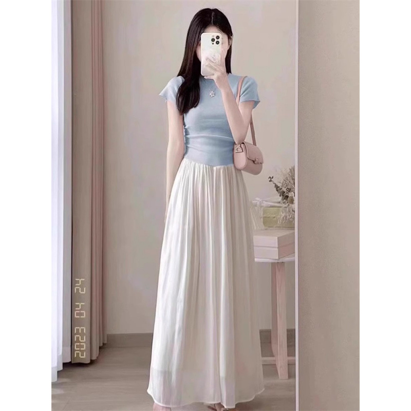 成为第一个“Summer salt outfit, gentle short-sleeved top, skirt, thin temperament, small fragrance two-piece suit for women” 的评价者