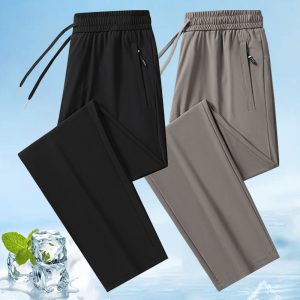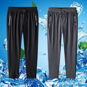 Ice silk slacks men’s summer thin drape, quick-drying cool trousers, plus size straight stretch running sweatpants